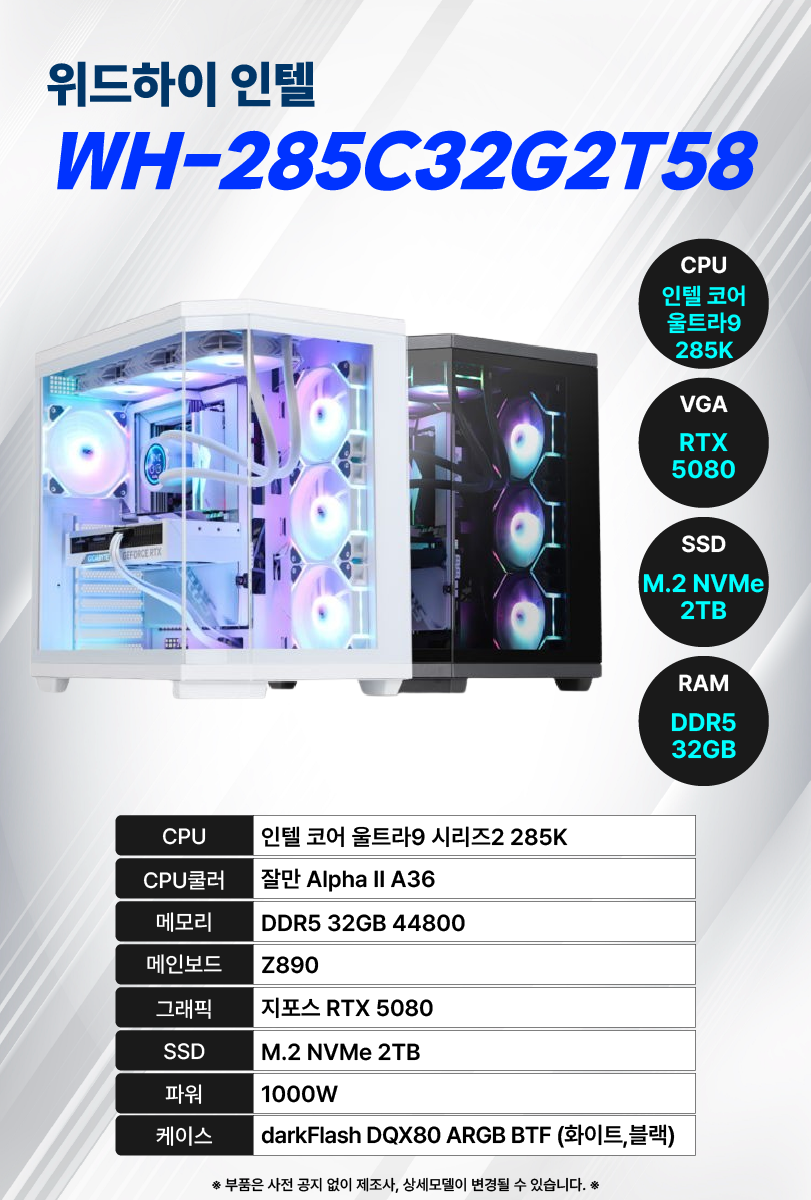 WH-285C32G2T58 위더스렌탈 [위더스컴퓨터] 위드 하이 인텔 PC 데스크탑 제품분류 노트북/PC AS기간 3년 최저 렌탈가 월 250,000 (렌탈가) 3년 할인 제휴카드 보기 렌탈신청 장바구니