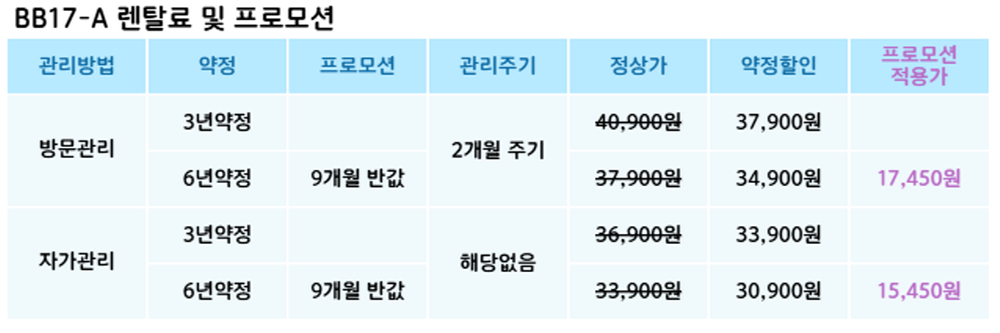 최저 렌탈가 30,900 (렌탈가) 제휴카드 할인가 (렌탈가)