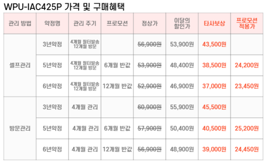 WPU-IAC425P SK매직 [SK매직] PSG 원코크 플러스 얼음물 정수기 제품분류 정수기 정수방식 직수형 기능 얼음냉온 AS기간 렌탈기간내 최저 렌탈가 월 37,000 (렌탈가) 제휴카드 할인가 월 (렌탈가) 3년 5년 6년 셀프관리 방문관리/4개월 셀프관리(타사보상) 방문관리/4개월(타사보상) 제품색상 선택 화이트 + 0원 뉴트럴실버 + 0원 할인 제휴카드 보기 렌탈신청 장바구니