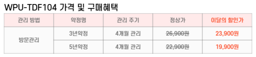 WPU-TDF104 SK매직 [SK매직] 뉴슬림 플러스 정수기 제품분류 정수기 정수방식 탱크형 기능 냉온전용 AS기간 렌탈기간내 최저 렌탈가 월 19,900 (렌탈가) 제휴카드 할인가 월 (렌탈가) 3년 5년 방문관리/4개월 제품색상 선택 내추럴화이트 + 0원 할인 제휴카드 보기 렌탈신청 장바구니