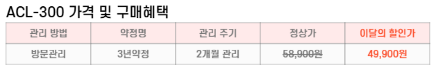ACL-300 SK매직 [SK매직] 슈퍼 공기청정기 30평형 제품분류 청정기 AS기간 렌탈기간내 최저 렌탈가 월 49,900 (렌탈가) 제휴카드 할인가 월 (렌탈가) 3년 방문관리/2개월 제품색상 선택 화이트 + 0원 할인 제휴카드 보기 렌탈신청 장바구니