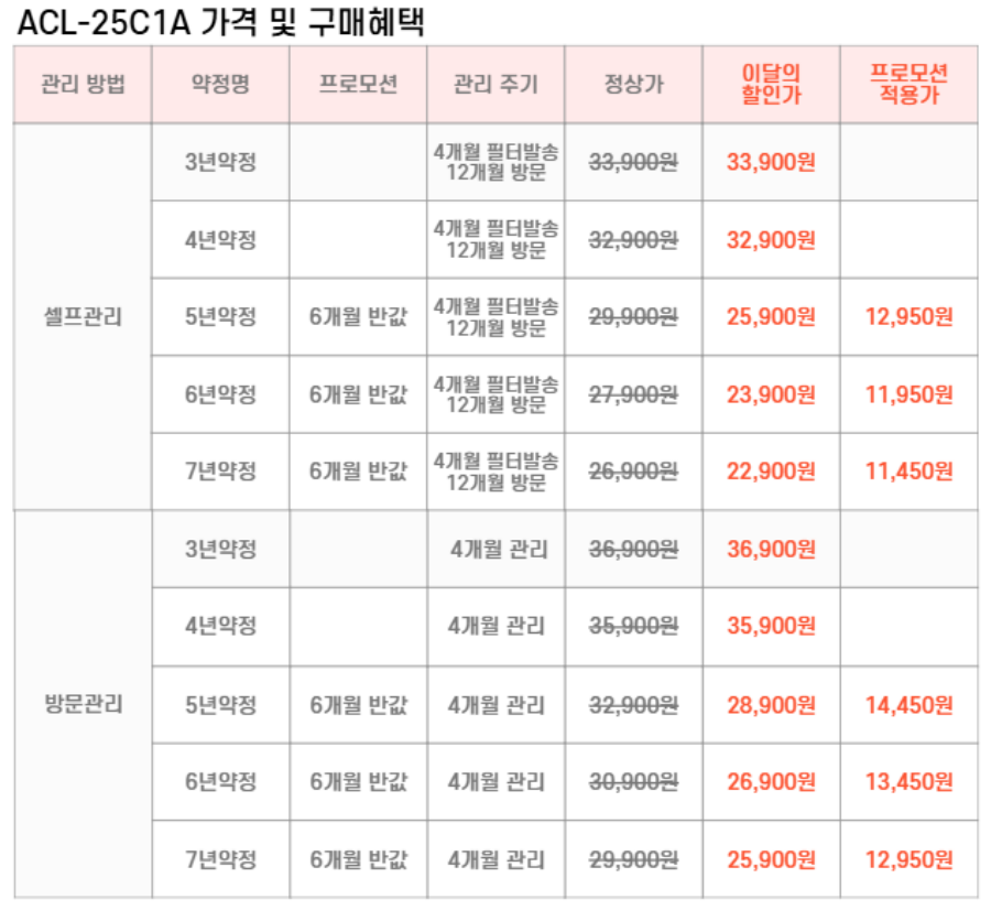 ACL-25C1A SK매직 [SK매직] 올클린 공기청정기 25평형 제품분류 청정기 AS기간 렌탈기간내 최저 렌탈가 월 22,900 (렌탈가) 제휴카드 할인가 월 (렌탈가) 3년 4년 5년 6년 7년 셀프관리 방문관리/4개월 제품색상 선택 크림베이지 + 0원 할인 제휴카드 보기 렌탈신청 장바구니