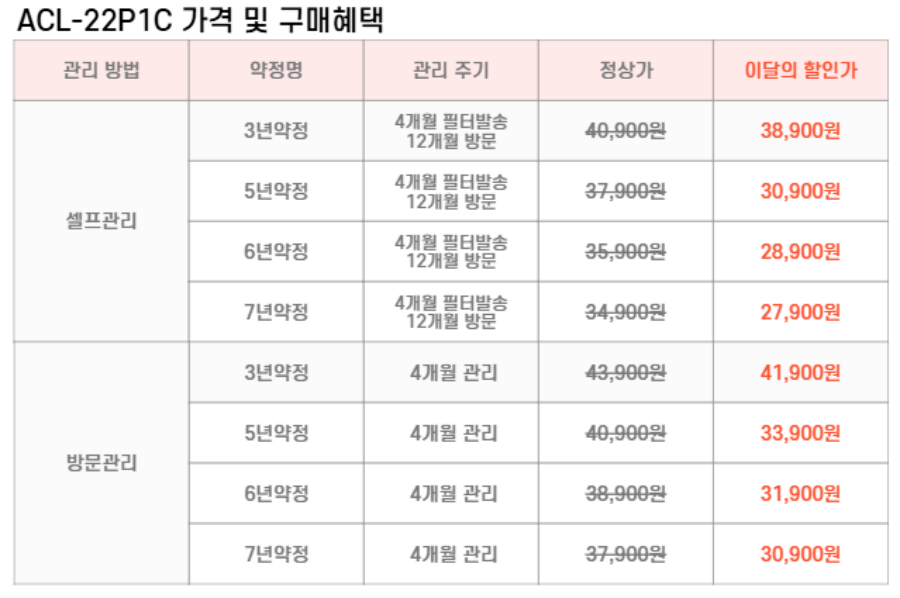 ACL-22P1C SK매직 [SK매직] 올클린 디아트 펫 공기청정기 22평형 제품분류 청정기 기능 펫기능 AS기간 렌탈기간내 최저 렌탈가 월 27,900 (렌탈가) 제휴카드 할인가 월 (렌탈가) 3년 5년 6년 7년 셀프관리 방문관리/4개월 제품색상 선택 실버 + 0원 할인 제휴카드 보기 렌탈신청 장바구니
