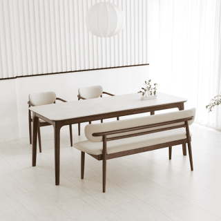 [헨지디자인] 베르나 5인 세라믹 식탁 SET 테이블+의자2+벤치의자 []