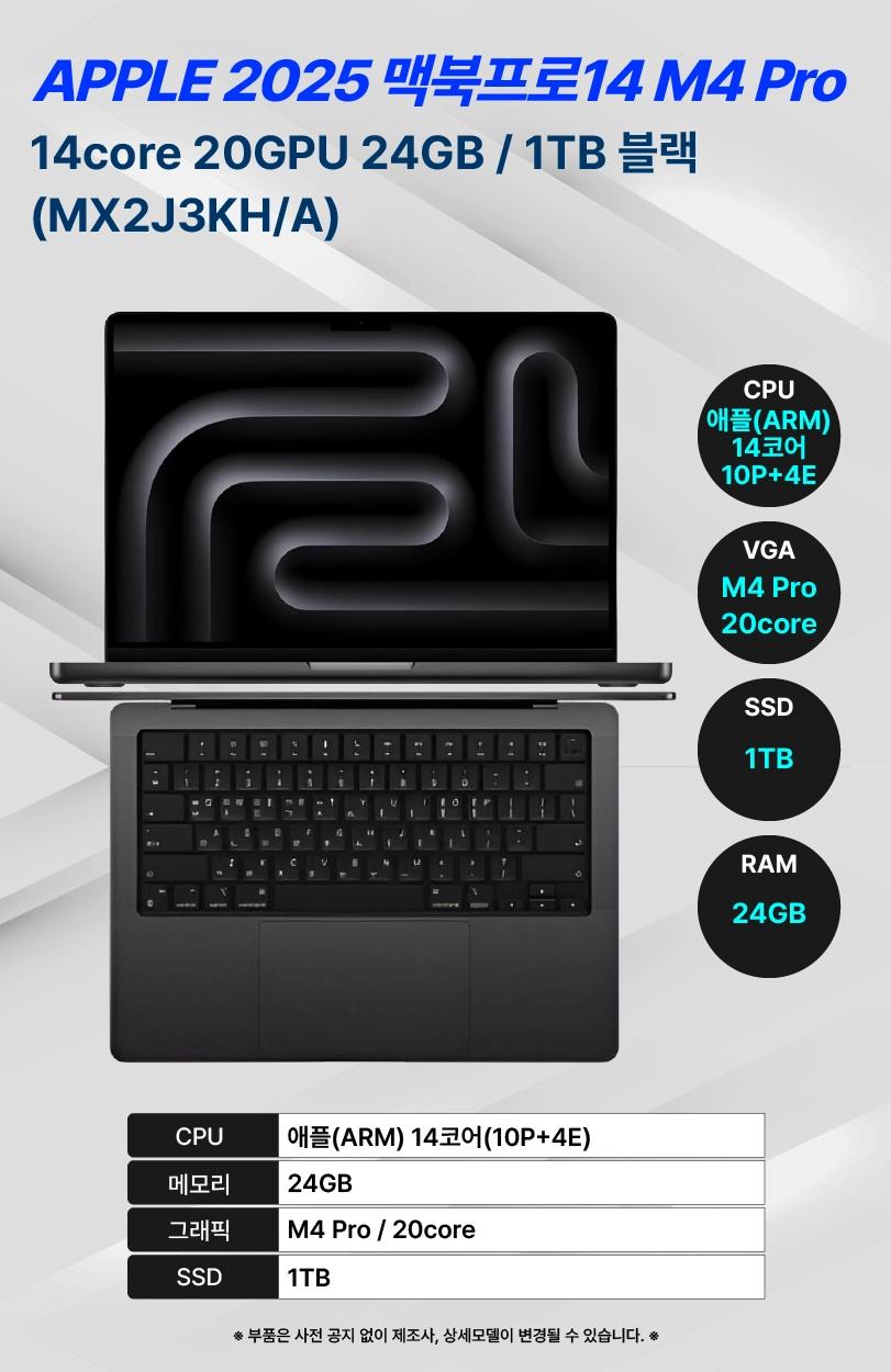MX2J3KH/A,MX2F3KH/A 위더스렌탈 [애플] 맥북프로 M4 Pro 14인치 노트북(1TB) 제품분류 노트북/PC 제품규격 14인치 AS기간 3년 최저 렌탈가 월 186,000 (렌탈가) 3년 제품색상 선택 블랙 + 0원 실버 + 0원 할인 제휴카드 보기 렌탈신청 장바구니